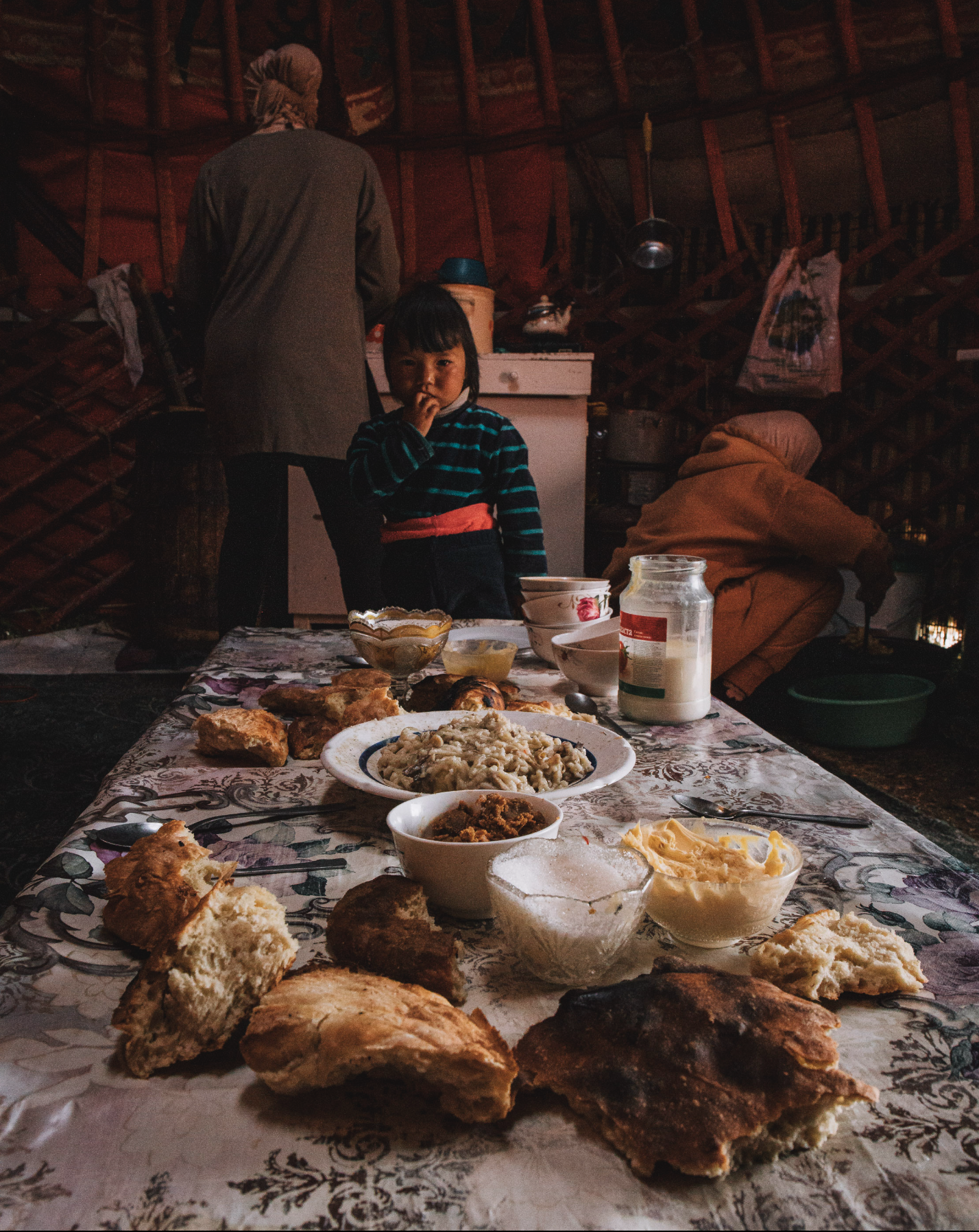 Meals are home-cooked by your hosts. While you won’t find five-course dinners, you can expect hearty local meals, endless hot tea, and rich, comforting flavours that reflect the nomadic lifestyle.